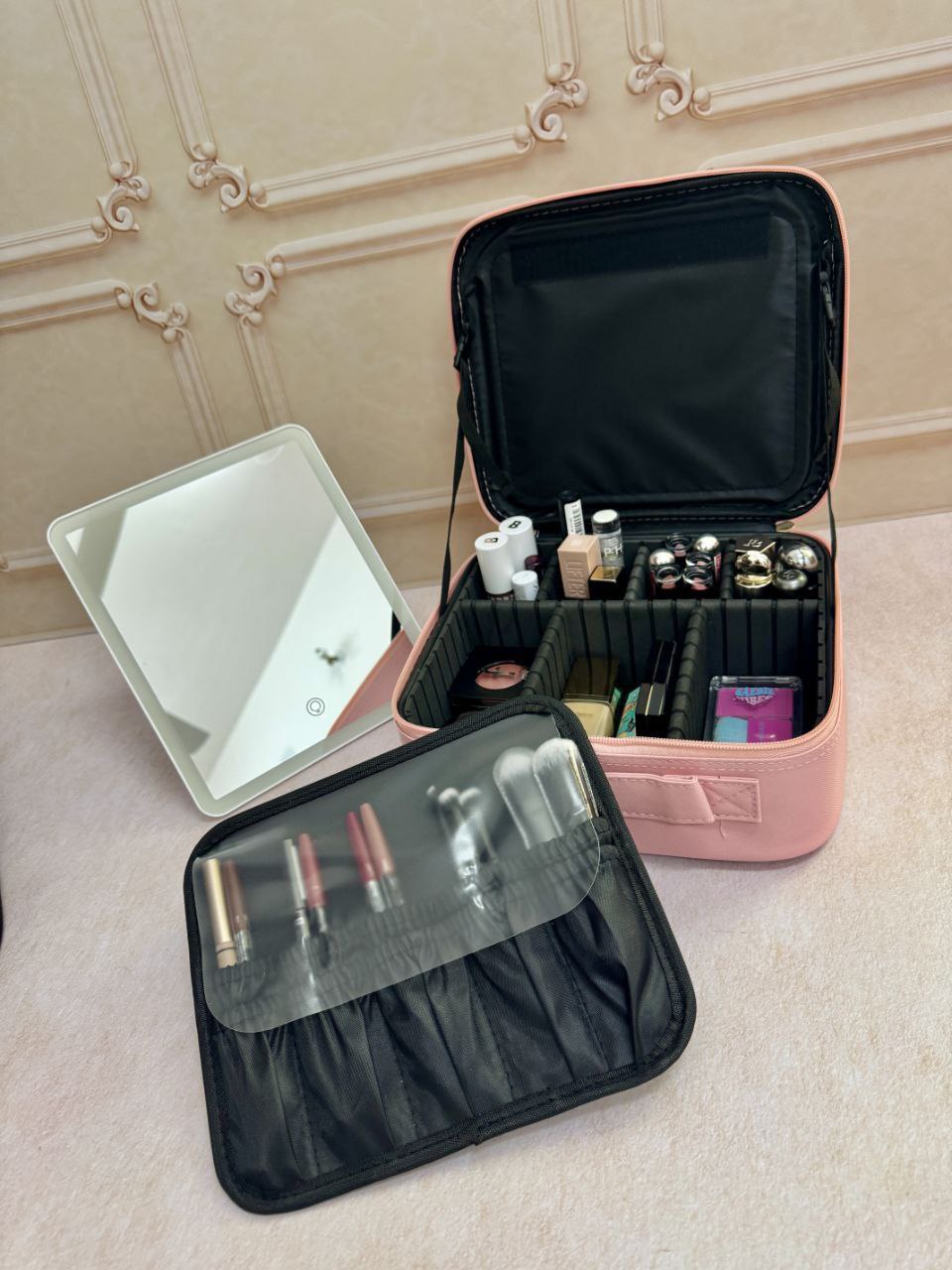 کیس لوازم آرایش قابل حمل با قسمت بندی قابل تغییر و بخش مجزا برای براش ها 💄🖌️
