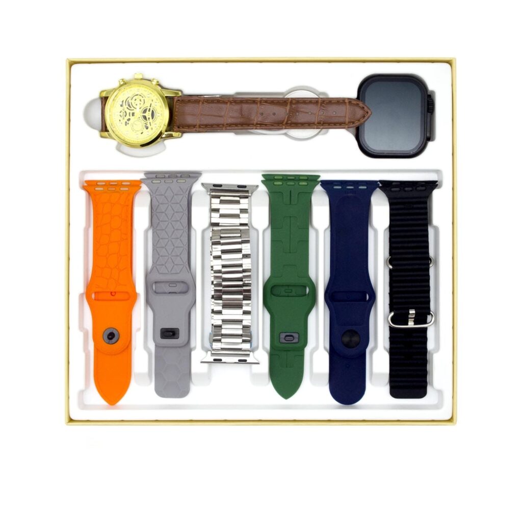 همراه یک عدد ساعت کلاسیک فلزی ۶ عدد بند (فلزی، سیلیکونی و پارچهای) صفحه نمایش لمسی و رنگی ۲ اینچ مقاوم در برابر آب نوع صفحه نمایش: IPS جنس بدنه ساعت: آلیاژ روی و سیلیکون دارای شش عدد بند سیلیکونی، برزنتی و فلزی نوع قفل بند ساعت: پین بنددارای قابلیت مکالمه از طریق بلوتوث سازگار با اندروید و آیفون پشتیبانی از زبان فارسی: دارد اقلام همراه: دفترچه راهنمادارای استاندارد های CE ،FCCو RoHSسنسورهای ساعت هوشمند: شمارشگر ضربان قلب، غلظت اکسیژن خون، گام شمار، پایش وضعیت خواب، شتاب سنج و ...