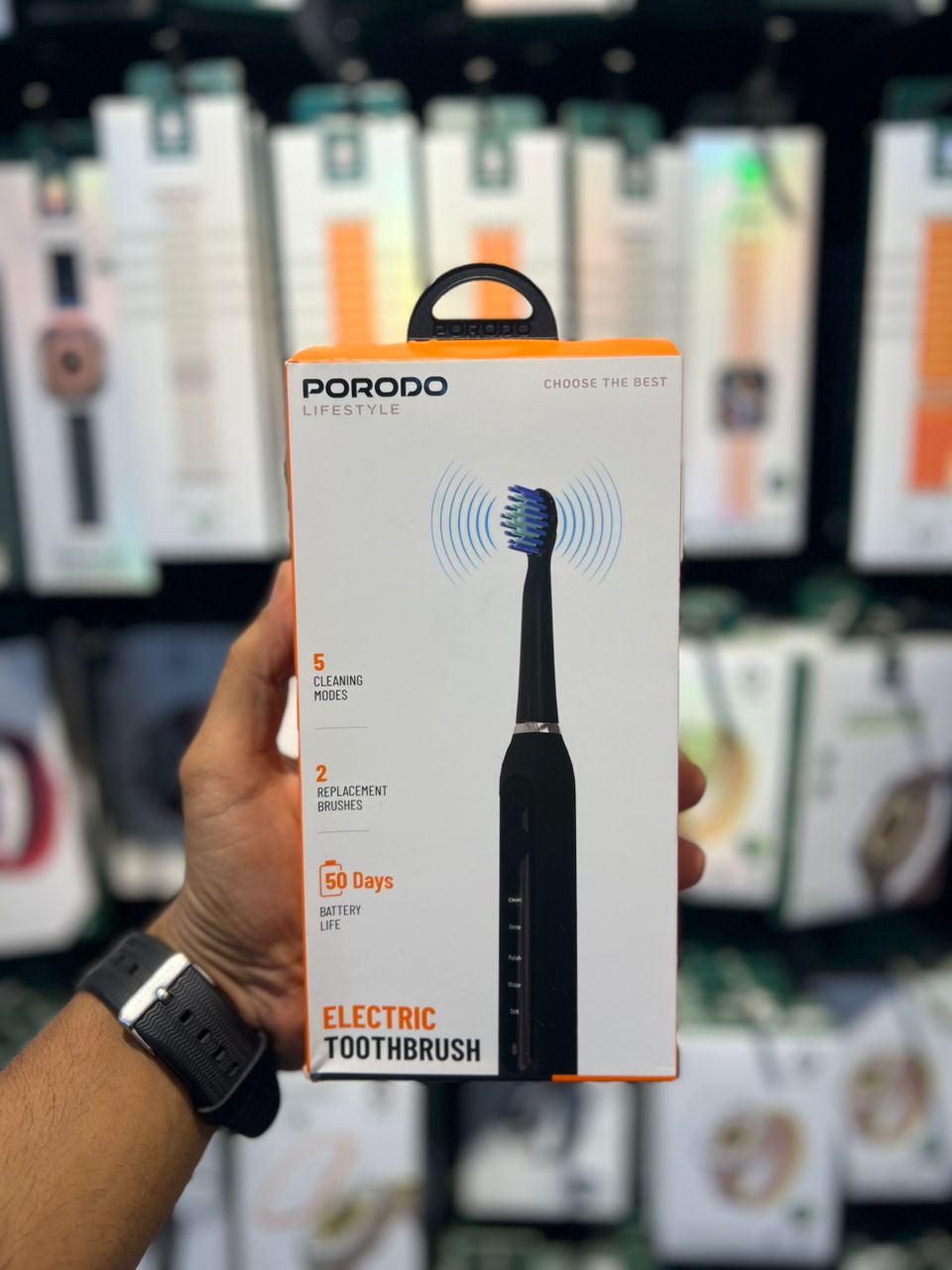 مسواک برقی پورودو با ۵ حالت تمیزکننده، ۲ سری یدک و عمر باتری ۵۰ روز، مناسب برای بهداشت کامل دهان و دندان.