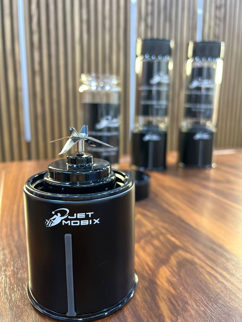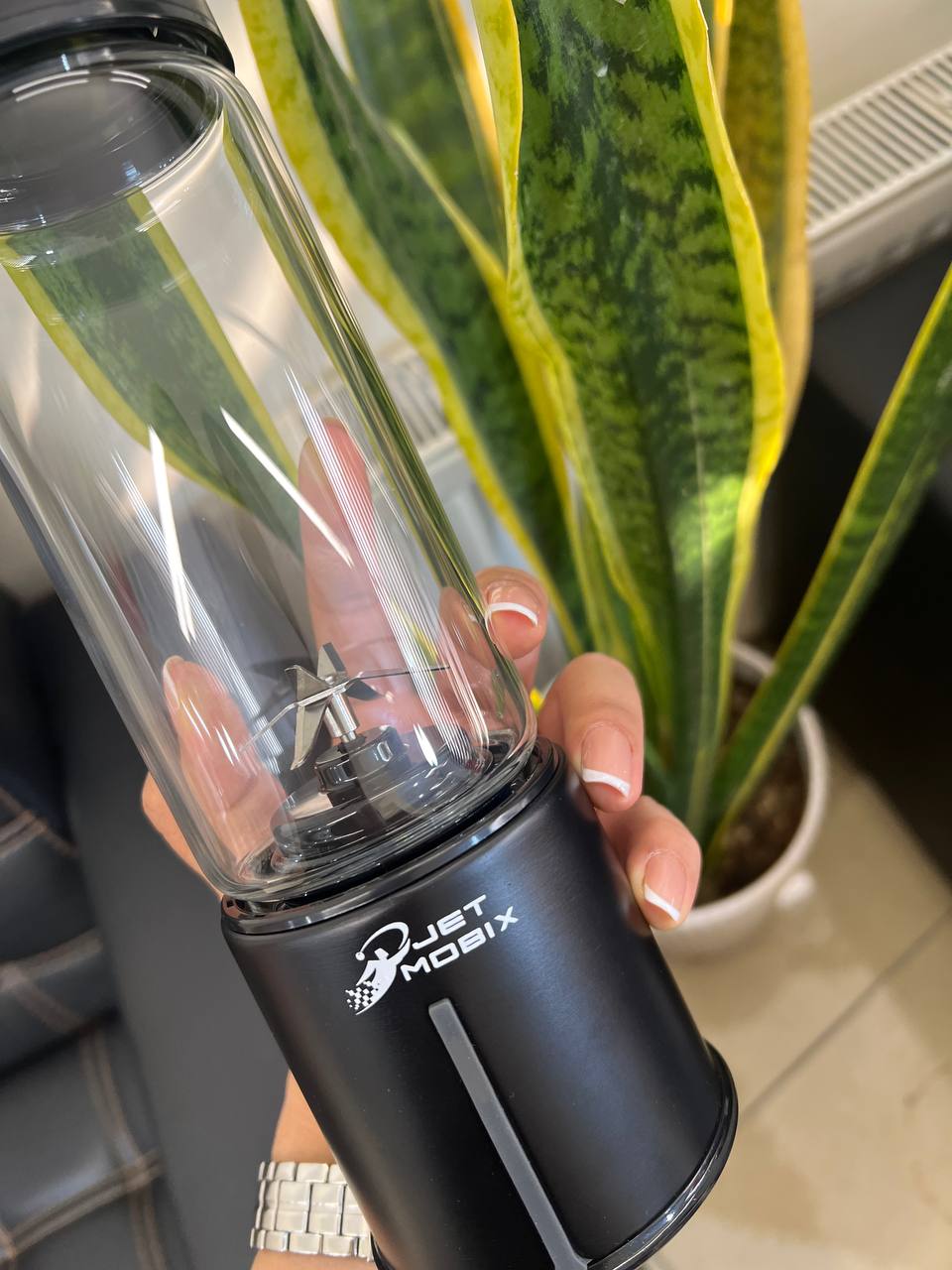 شیکر و مخلوط کن شارژی جت موبیکس مدل space jet یک محصول ضد آب و با اصالت ساخت کشور تایوان است که با بدنه استیل و تیغه 6 جهته استنلس استیل و استفاده از موتور پرقدرت 126 وات (موتور براش دریل شارژی برای این محصول استفاده شده) میتواند به راحتی یخ را بدون استفاده از مایعات برای شما خرده کند و شما می توانید تمامی اسموتی ها، شیک ها و نوشیدنی های بر پایه یخ را با این محصول درست کنید و حتی دانه های سخت مانند دانه فلفل سیاه یا زنجبیل یا جوز هندی و ... را به راحتی خرد و آسیاب کنید. این محصول را میتوانید در آشپزی ، ورزش و در سفر و تفریحات استفاده کنید و لذت ببرید . این مخلوط کن شارژی 2 حالت روشن کردن دارد (1-سه ثانیه دکمه روشن شدن محصول را نگه دارید که این مود اصلی این مخلوط کن است 2-دوبار فشردن دکمه اصلی که این مود فقط برای شست و شو استفاده میشود مخلوط کن فقط با 20 درصد توان خود کار میکند) این محصول از دو باتری لیتیوم پلیمر قدرتمند استفاده میکند که در مجموع 4000 میلی آمپر قابلیت ذخیره سازی انرژی دارد و با هر بار شارژ شما می توانید حدود 20 بار از این محصول استفاده کنید. دور موتور این محصول 16500 دور بر دقیقه است که تیغه استیل ضد زنگ (استیل بهداشتی) این مخلوط کن شارژی را با سرعت بالایی به حرکت در می آورد تا تمام محتوای داخل مخزن شیشهای این شیکر را به خوبی مخلوط کرده و یک مخلوط یک دست و نرم را برای شما به ارمغان بیاورد. توجه کنید برای افزایش عمر دستگاه به هیچ عنوان نباید با شارژر فست شارژ محصول را شارژ کنید و میتوانید با آداپتور های معمولی موبایل (غیر فست شارژ) به راحتی محصول را شارژ کرده و سال ها از آن استفاده کنید . دقت کنید این محصول ضد آب است و به راحتی میتوانید آن را بشورید اما دقت کنید که سلیکون قسمت شارژ دستگاه باید پوشیده باشد