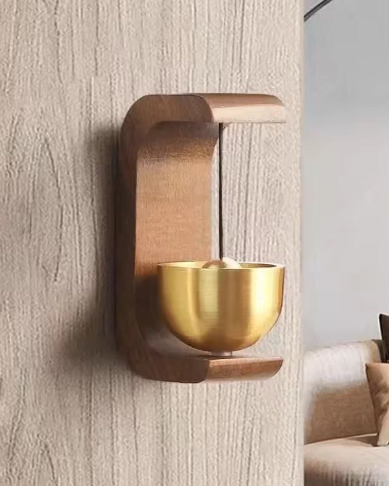جنس بدنه چوب طبیعی با رنگ کرمی روشن جنس زنگ فلز برنجی صیقلی ابعاد 8 × 4 × 3 سانتیمتر وزن حدود 100 گرم رنگ ترکیب چوب طبیعی و طلایی گرم سبک طراحی مینیمال ژاپنی (Zen) کاربرد دکوری، زنگ در، زنگ مراقبه، هدیه