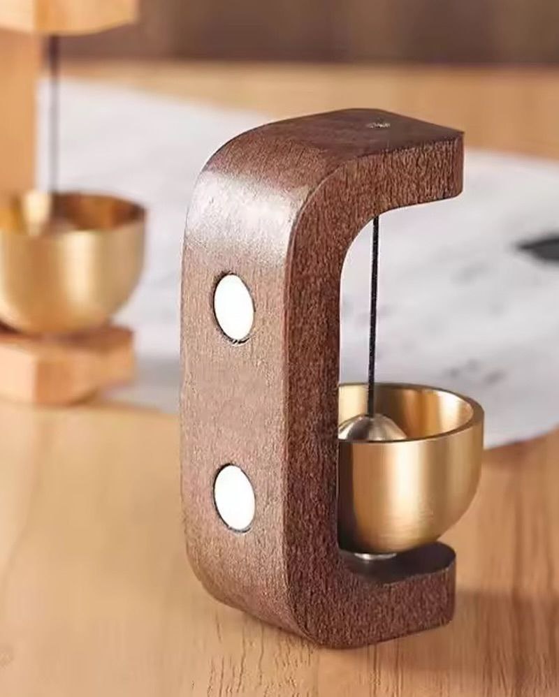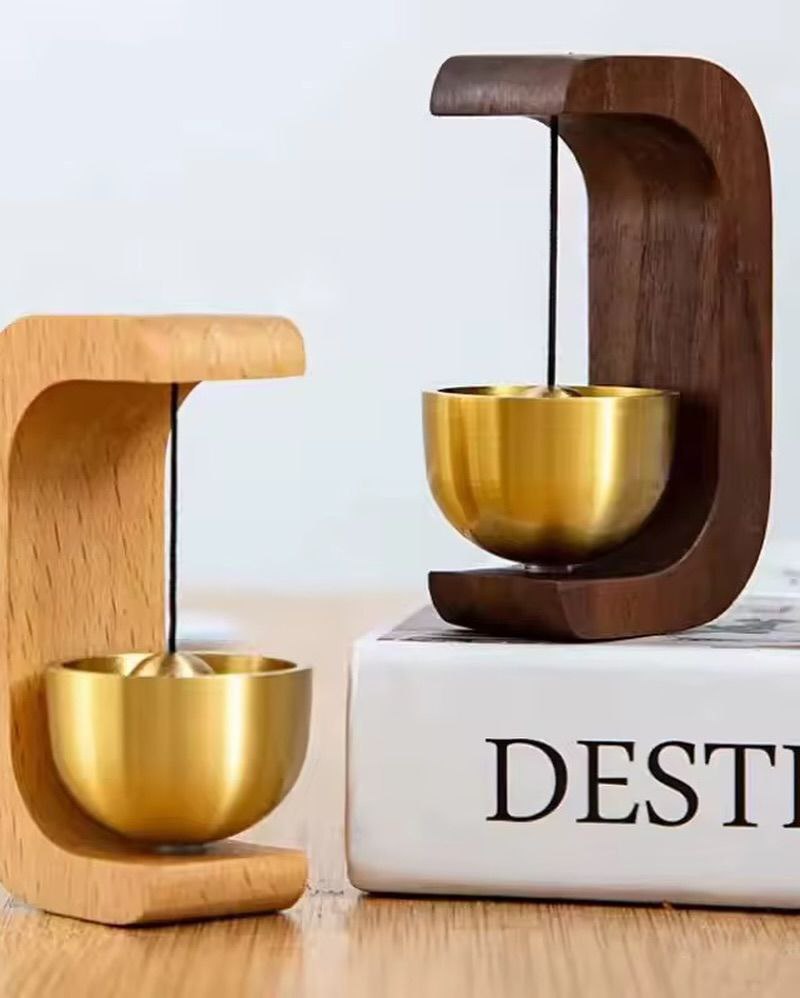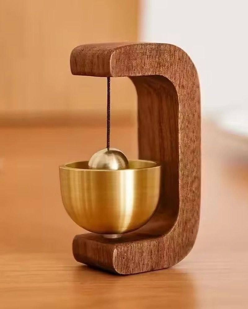 این زنگ با چوب طبیعی و زنگ برنجی صیقلی ساخته شده و با صدایی ملایم و لطیف، حس تعادل، حضور و سکون را در فضا پخش میکند.