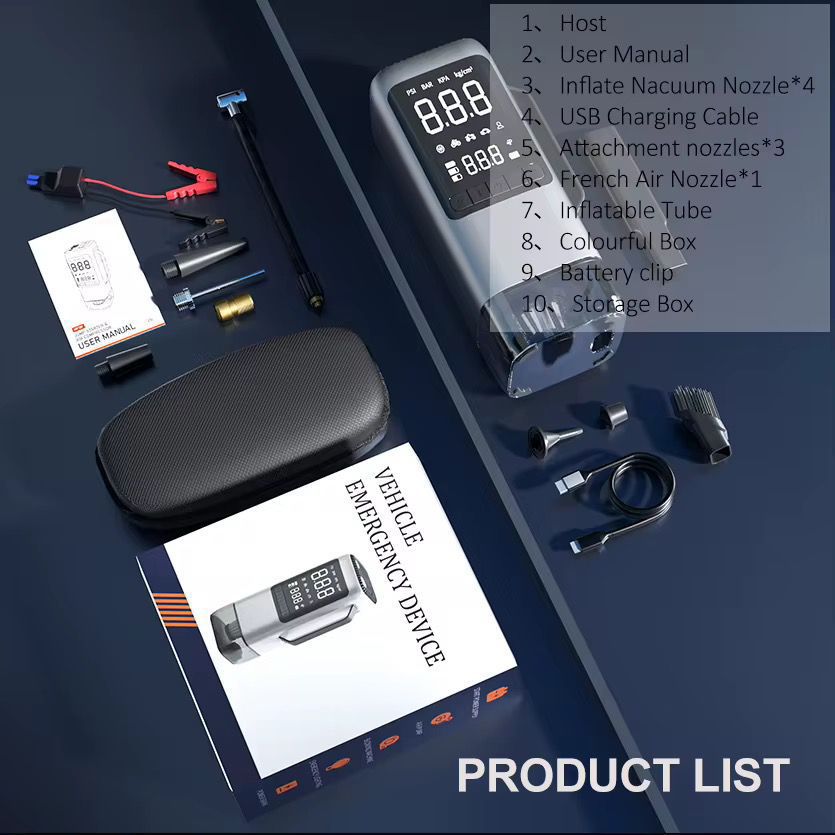 جامپ استارتر مدل ATJ-9366-B یک دستگاه همهکاره برای رانندگان حرفهای است که ترکیبی از پمپ باد قوی، استارتر خودرو، پاوربانک و جاروبرقی قابل حمل را در یک بدنهی فشرده و مقاوم ارائه میدهد.