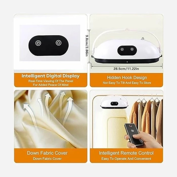 خشک کردن لباس بین ۲ تا ۲۰ تکه لباس دارای تایمر ۳۰ دقیقه تا ۶ ساعت دارای پارچه روکش برای کارایی بهتر ابعاد:۱۳×۲۰×۳۳سانتی متر توان مصرفی:۶۰۰ وات