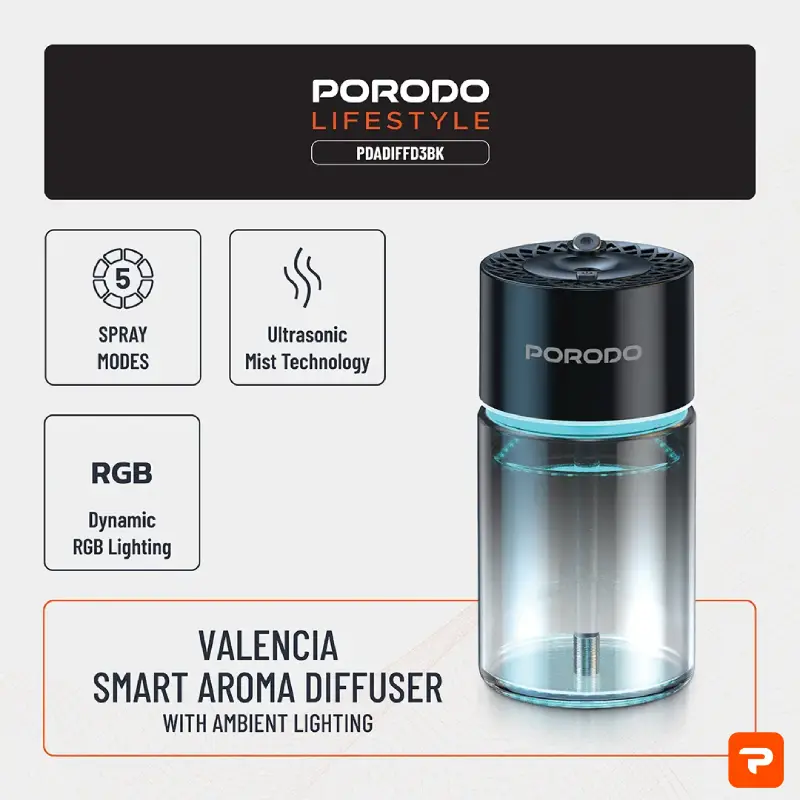 خوشبوکننده هوشمند پرودو Valencia با طراحی مدرن و رنگ مشکی شیک، دستگاهی ایدهآل برای خوشبو کردن فضاهای خانگی و کاری است. این دیفیوزر با قابلیتهای هوشمند و مصرف بهینه، عطر را به صورت یکنواخت در محیط پخش کرده و فضایی دلپذیر و آرامشبخش ایجاد میکند.