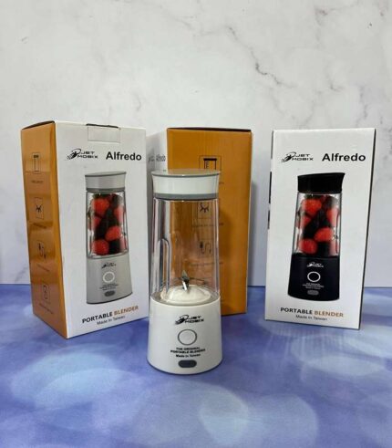شیکر و مخلوط کن شارژی جت موبیکس مدل آلفردو یک محصول ضد آب و با اصالت ساخت کشور تایوان است. ظرفیت محفظه ی آن 400 میلی لیتر است. جنس بدنه محصول پلاستیک و تیغه 6 جهته آن فولاد ضد زنگ می باشد . این محصول دارای موتور پرقدرت 126 وات می باشد . ( موتور براش دریل شارژی برای این محصول استفاده شده). این محصول را میتوانید در آشپزی ، ورزش و در سفر و تفریحات استفاده کنید و لذت ببرید . این مخلوط کن شارژی 2 حالت روشن کردن دارد ( 1- سه ثانیه دکمه روشن شدن محصول را نگه دارید که این مود اصلی این مخلوط کن است -2 دوبار فشردن دکمه اصلی که این مود فقط برای شست و شو استفاده میشود مخلوط کن فقط با 20 درصد توان خود کار میکند این محصول از دو باتری لیتیوم پلیمر قدرتمند استفاده میکند که در مجموع 4000 میلی آمپر قابلیت ذخیره سازی انرژی دارد و با هر بار شارژ شما می توانید حدود 20 بار از این محصول استفاده کنید دور موتور این محصول 18000 دور بر دقیقه است که تیغه استیل ضد زنگ استیل بهداشتی این مخلوط کن شارژی را با سرعت بالایی به حرکت در می آورد. فقط 30 ثانیه زمان احتیاج دارد تا تمام محتوای داخل مخزن شیشه ای این شیکر را به خوبی مخلوط کرده و یک مخلوط یک دست و نرم را برای شما به ارمغان بیاورد . توجه کنید برای افزایش عمر دستگاه به هیچ عنوان نباید با شارژر فست شارژ محصول را شارژ کنید و میتوانید با آداپتورهای معمولی موبایل ( غیر فست شارژ به راحتی محصول را شارژ کرده و سال ها از آن استفاده کنید . دقت کنید این محصول ضد آب است و به راحتی میتوانید آن را بشورید اما دقت کنید که سلیکون قسمت شارژ دستگاه باید پوشیده باشد .