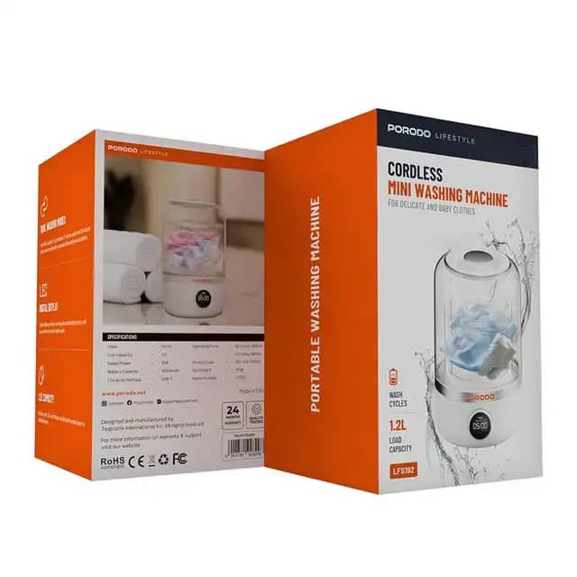 موارد مصرف لباس زیر، جوراب، لباس نوزاد، حولههای کوچک زمان شارژ کامل : حدود 3.5 ساعت تعداد شستوشو در هر شارژ : حدوده 196 دقیقه زمان کارکرد دارای صفحهنمایش دیجیتال: برای تنظیم تایمر شستوشو زمان شستوشو: معمولاً بین 10 تا 15 دقیقه بدون نیاز به اتصال دائمی به برق: با شارژ USB قابل استفاده در هر مکان
