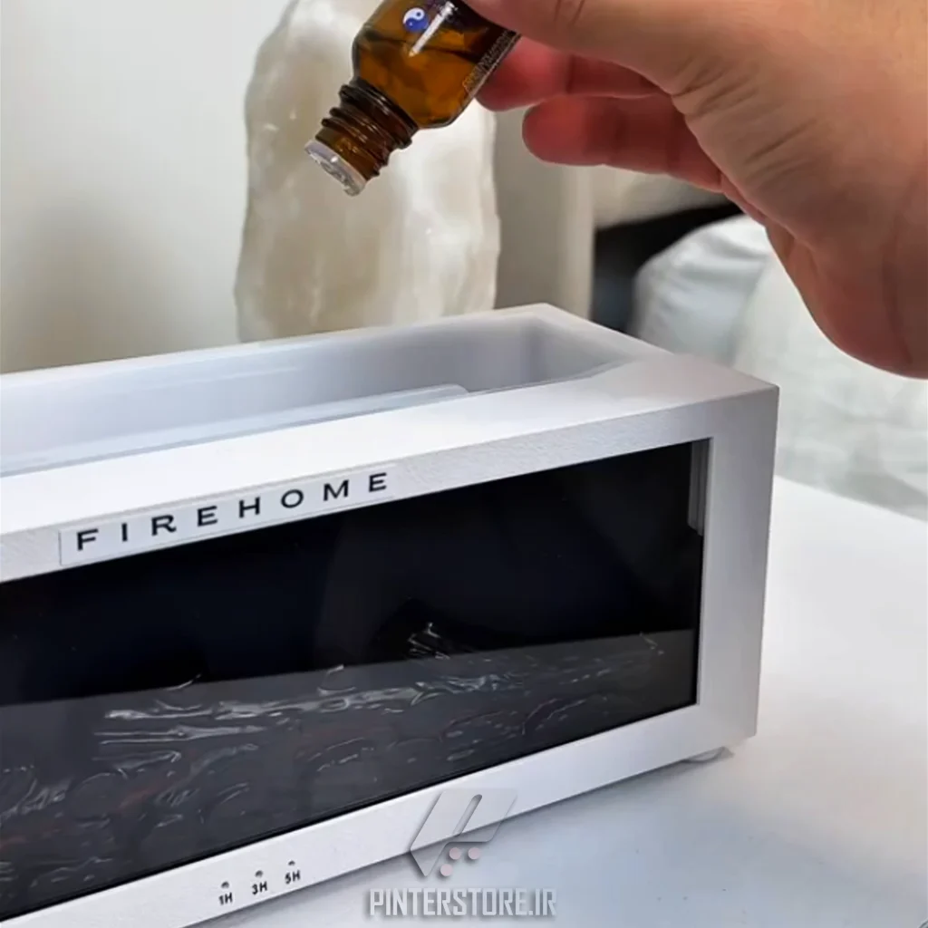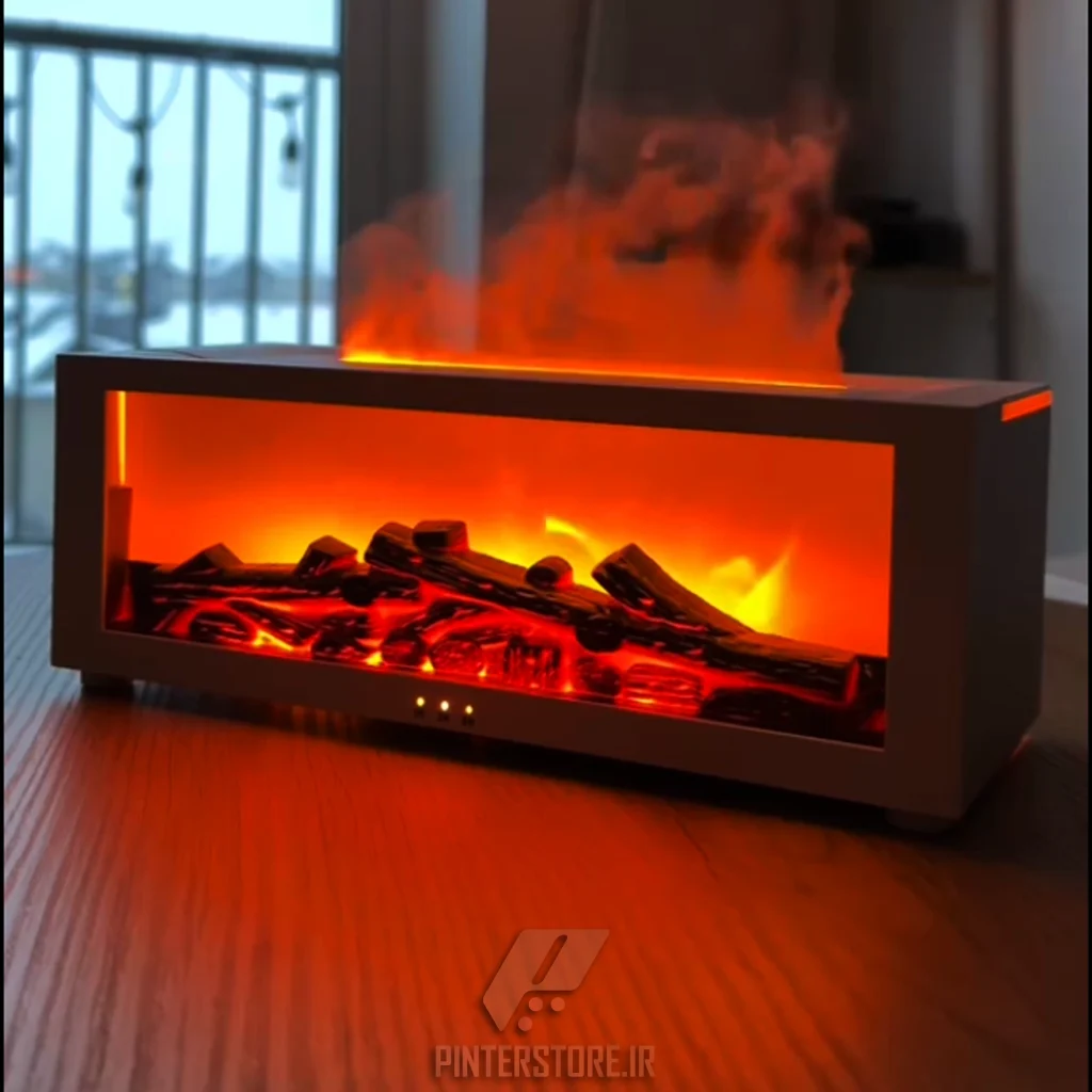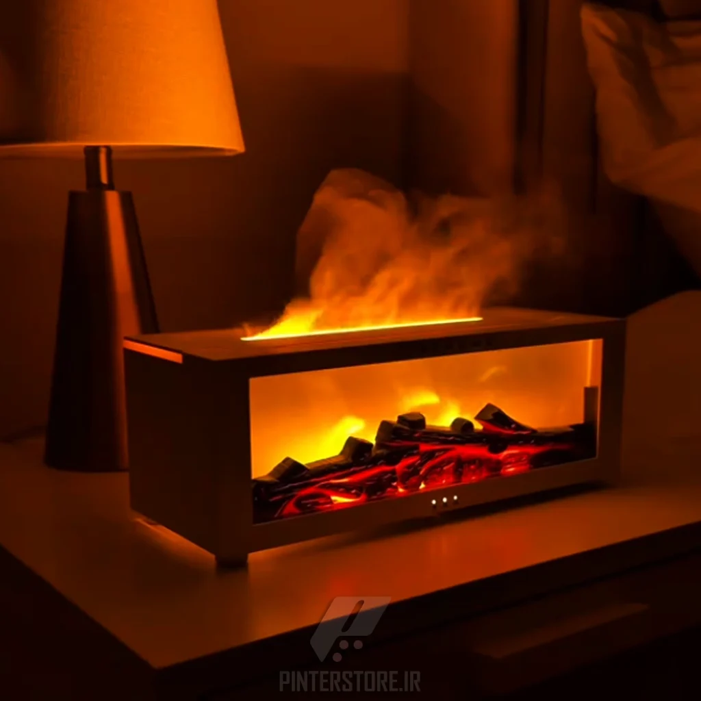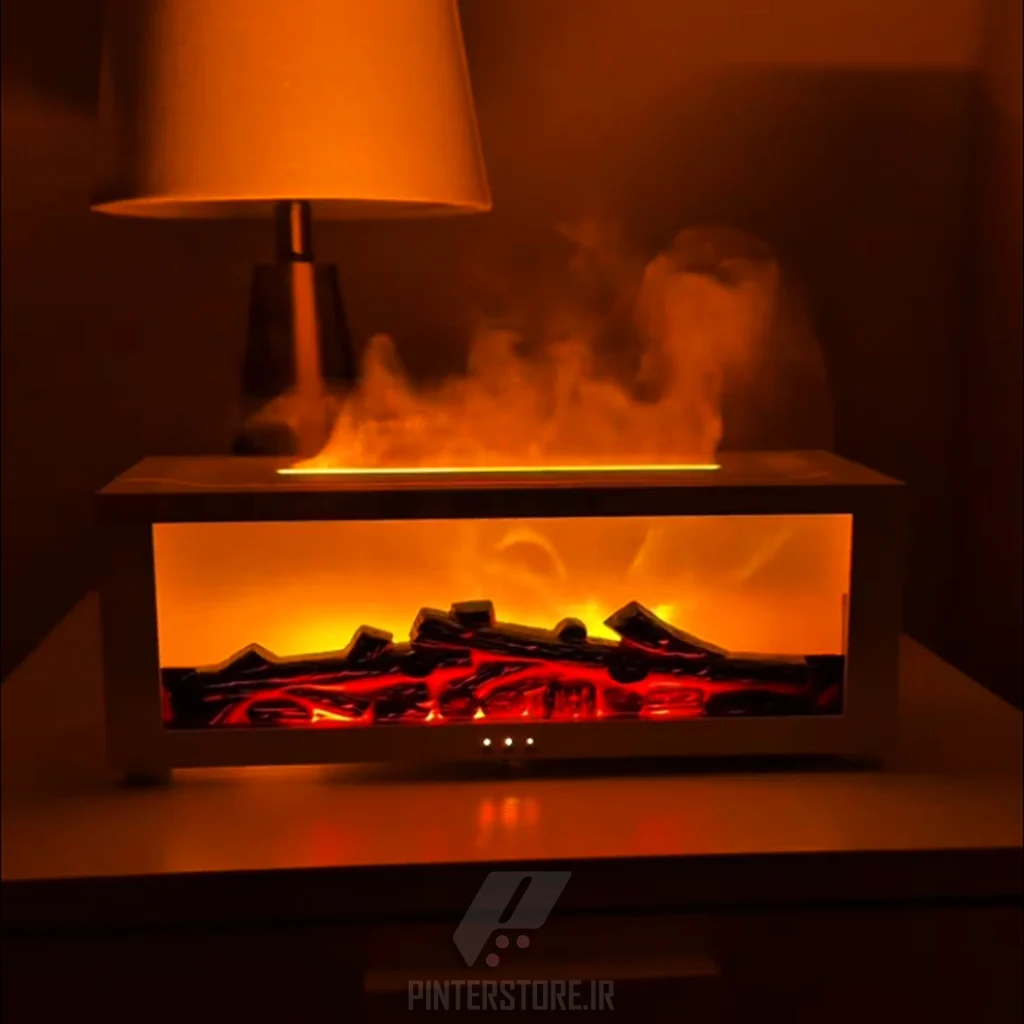 جلوه تصویری متحرک شعله (بدون شعله واقعی) بخور دهنده سرد با فناوری اولتراسونیک آروما تراپی با پخش عطر و رایحه نور گرم و ملایم با قابلیت تنظیم نور در 7 رنگ حالت تنفسی و تغییر رنگ خودکار
