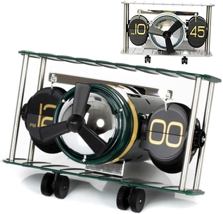 ساعت رومیزی بسیار جذاب فلیپ طرح هواپیما . ساعت رترو با طراحی جذاب نمایشگر Split-flap . مناسب برای تزئینات خانه و محل کار . حالت زمان 12 ساعته و دقت ± ۹۰ ثانیه در ماه . نیاز به یک باتری . هدیه جذاب و با کیفیت به عنوان یک اکسسوری خاص