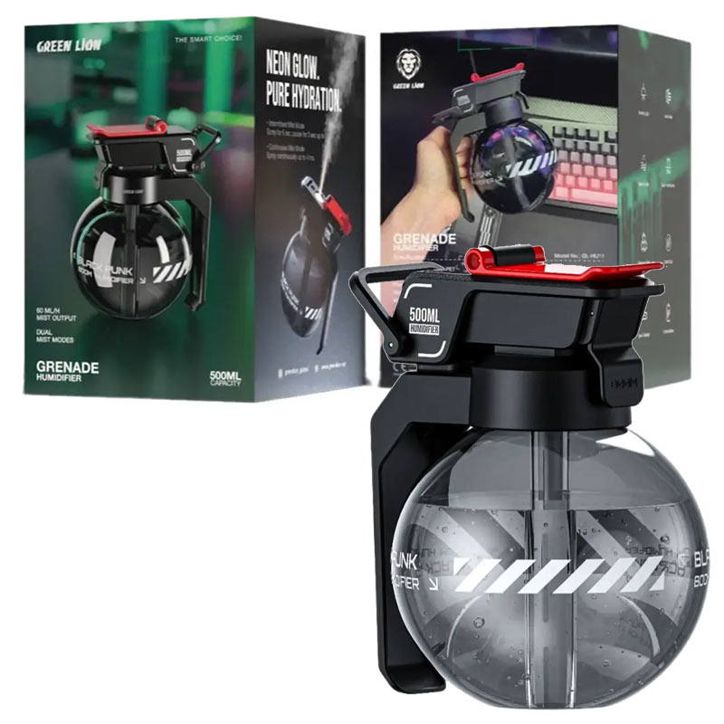خوشبو و مرطوب کننده نارنجک 500 میلی لیتر گرین (Green Lion Grenade Humidifier 500mL) یک دستگاه رطوبت ساز و خوشبو کننده هوا با طراحی جذاب به شکل نارنجک است که علاوه بر زیبایی ظاهری، کارایی بالایی دارد. این محصول از مواد با کیفیت ABS و PET ساخته شده و مجهز به باتری داخلی قابل شارژ 1100 میلی آمپر ساعت است که توانایی عملکرد مداوم 4 تا 8 ساعت را دارد. شارژ دستگاه از طریق درگاه USB Type-C انجام می شود و زمان شارژ کامل حدود 2.5 ساعت است.