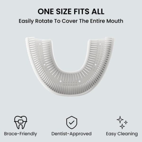 این دستگاه با طراحی U شکل خود که کاملاً با آناتومی فک و دندانها سازگار است، در ترکیب با لرزشهای سونیک با فرکانس بالا، تمام نقاط دندانهای شما را به صورت همزمان تمیز میکند. تایمر هوشمند ۴۵ ثانیهای، یک مسواک زدن کامل و مؤثر را تضمین کرده و در زمان شما صرفهجویی میکند.