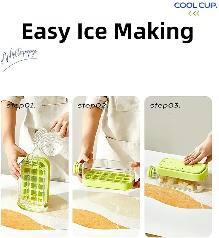 این بطری به شما امکان میدهد مکعبهای یخ را به راحتی در یک فضای فشرده و قابل حمل تهیه کنید و از ریخت و پاش جلوگیری میکند.