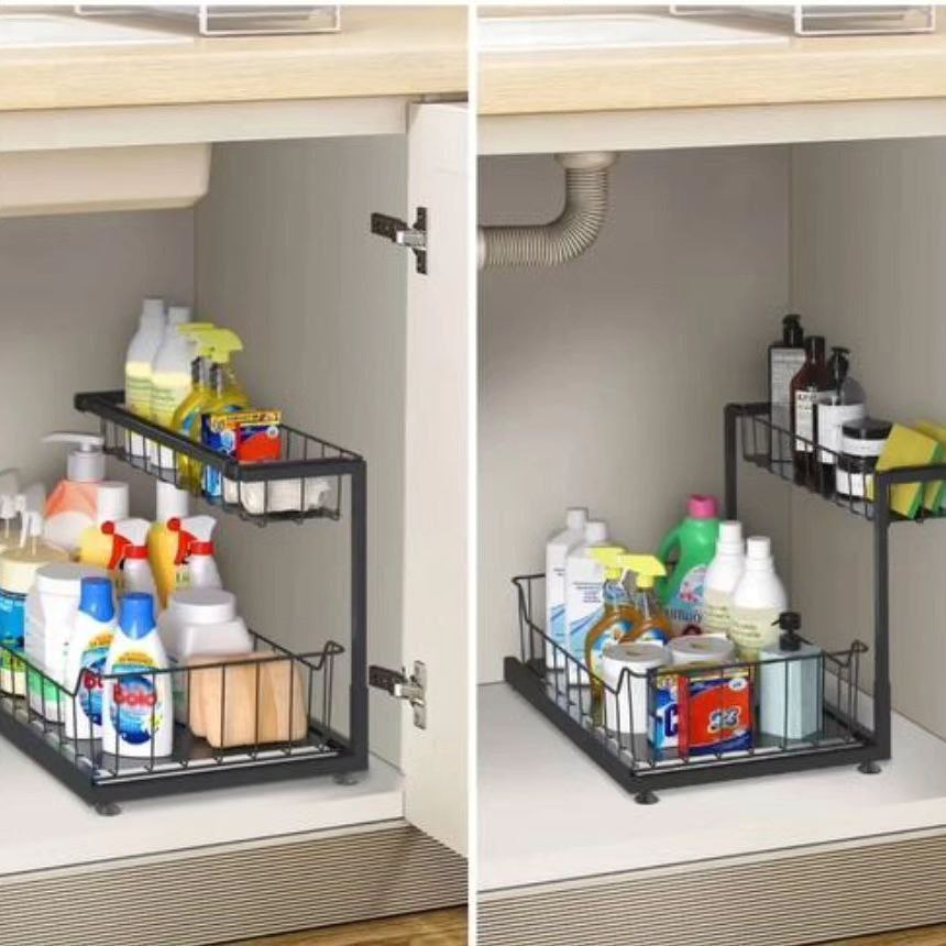 این طرح در زیر کابینت های سینک به خوبی کار می کند، زیرا قفسه بالایی را می توان به راحتی در سمت چپ یا راست نصب کرد و به شما انعطاف پذیری برای کار در اطراف لوله کشی و سازماندهی کارآمدتر می دهد.