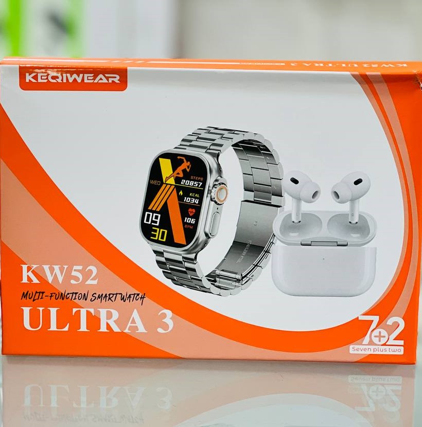 با این ساعت میتوانید فعالیتهای روزانه و ورزشی خود را مدیریت کنید، موسیقی و اعلانها را کنترل کنید و از تجربهای مدرن روی مچ دست لذت ببرید. همین حالا KW 52 ultra3 را سفارش دهید و دنیای هوشمند ساعتهای پیشرفته را تجربه کنید. همچنین با خرید این مدل، یک ایرپاد پرو هدیه دریافت خواهید کرد.