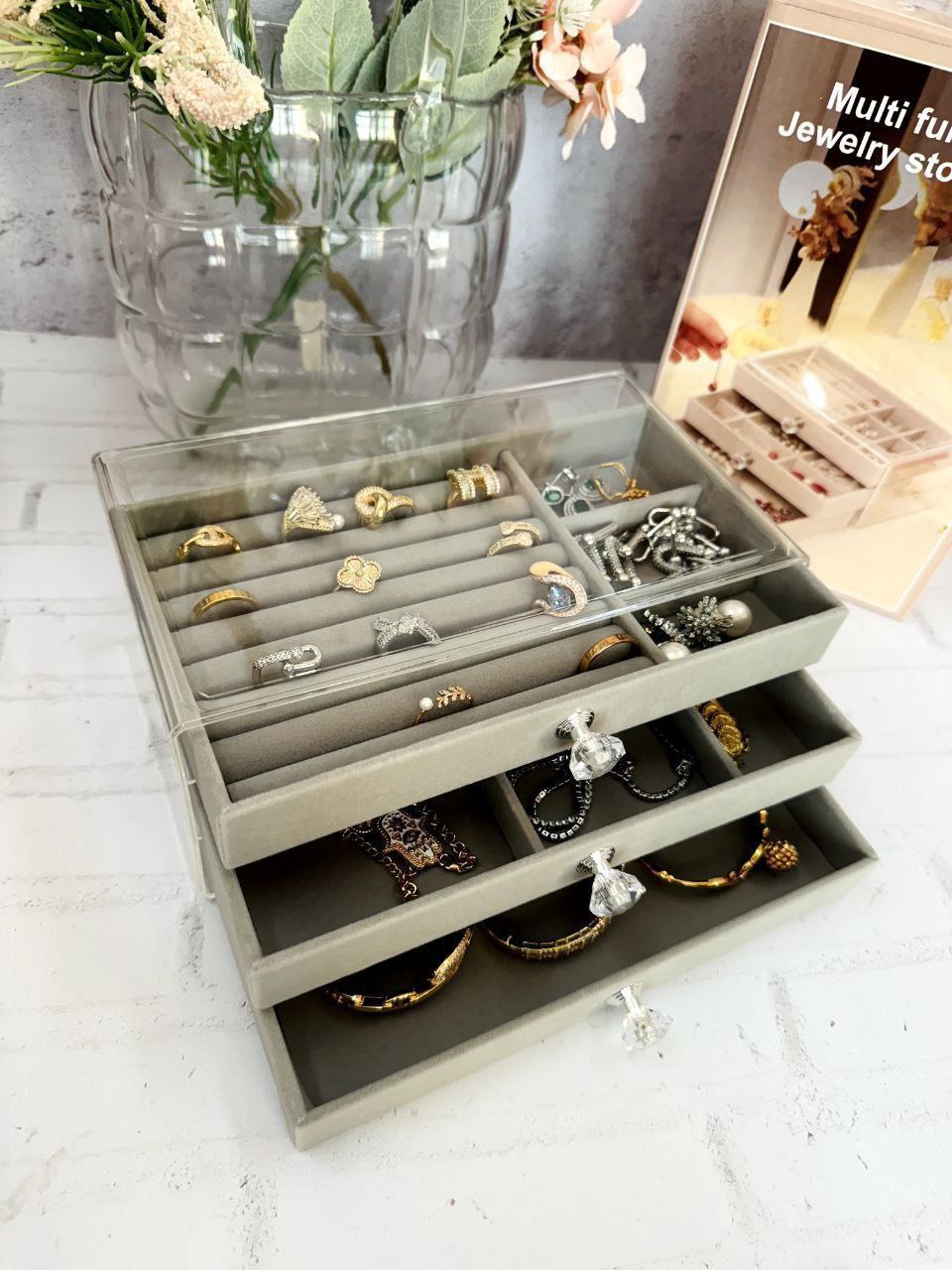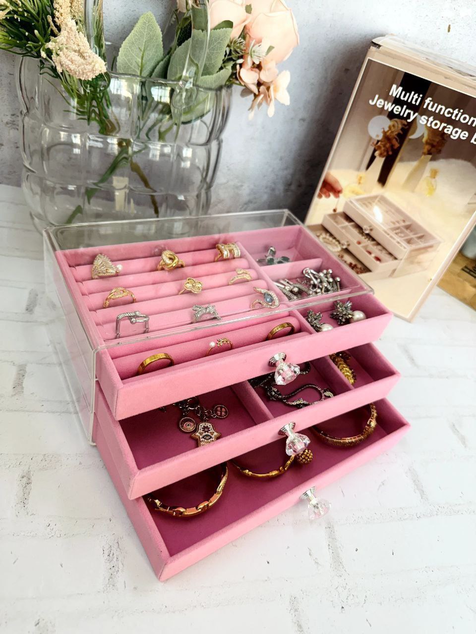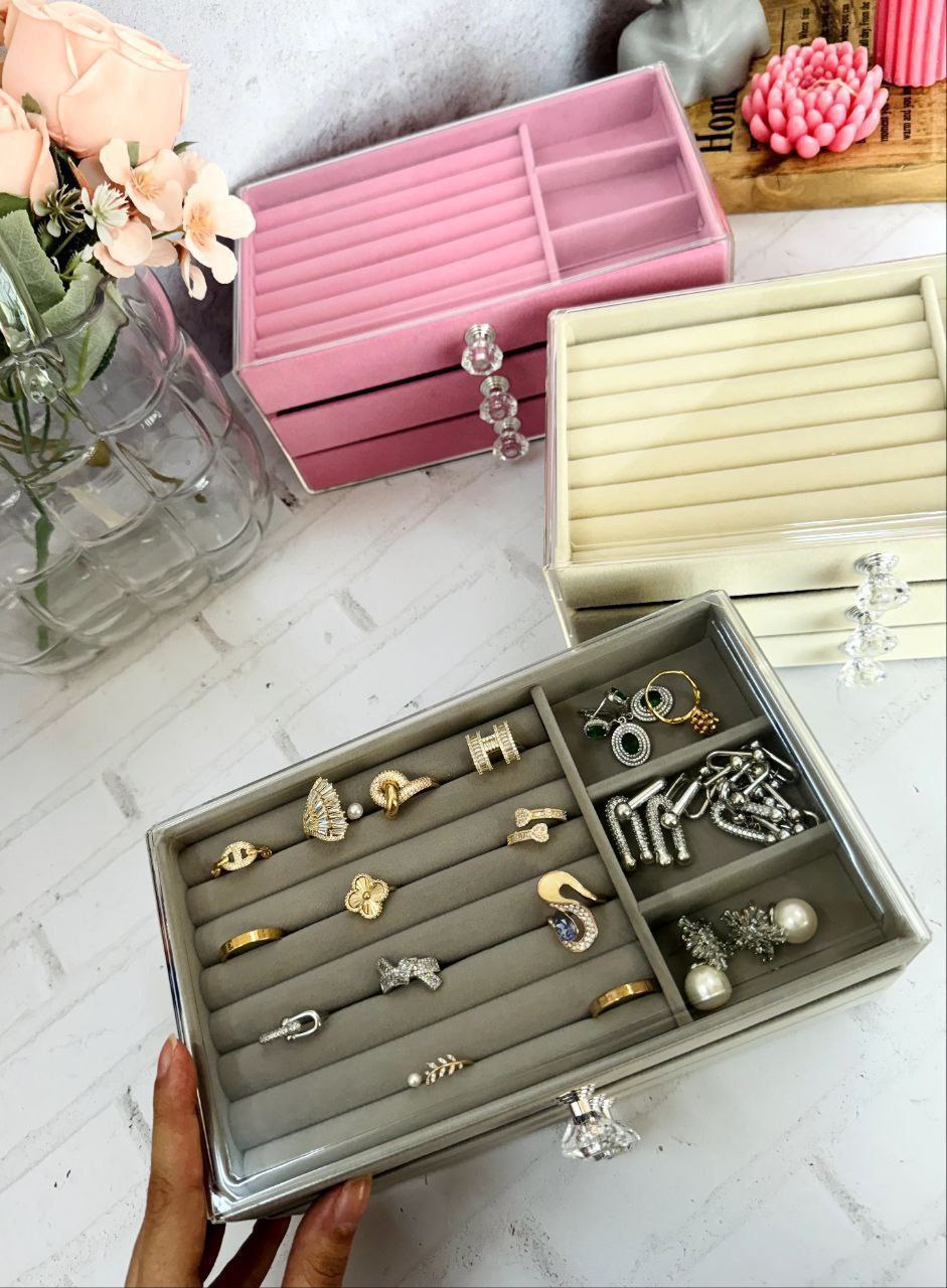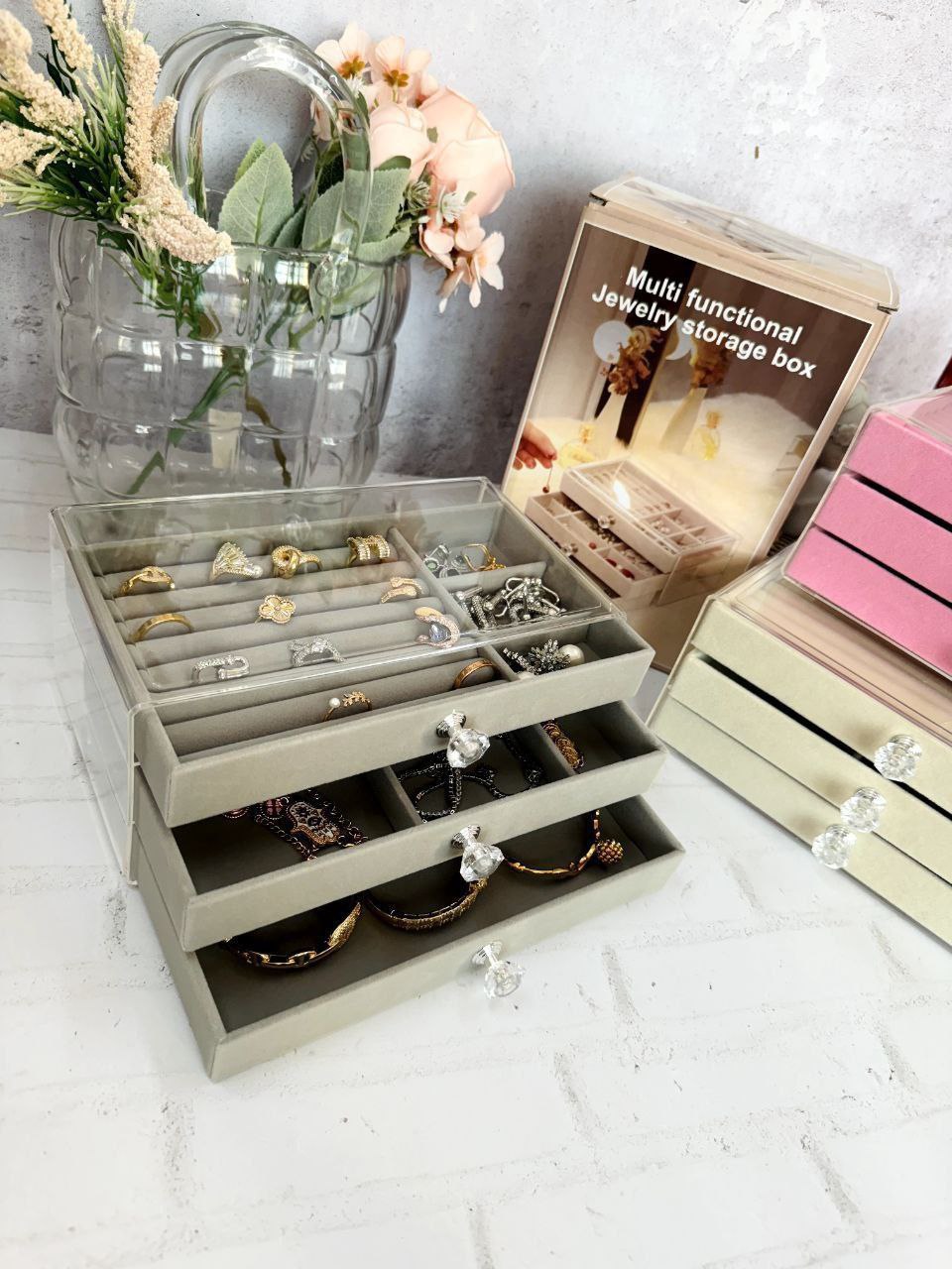 #حراج_زیر_قیمت_خرید جعبه جواهرات و اکسسوری 😍✨ قشنگترین و کاربردی ترین جاجواهری 🤍 جاجواهری سه طبقه شیشه ای🥰😍 ▫️دارای سه کشو ▫️فوق العاده باکیفیت ▫️خیلی جادار ▫️رنگبندی: رندم ابعاد : 10/*5 * 13 * 22 ✨ میتونین ساعت دستبند انگشتر و گوشواره و … با این باکس نظم بدین و مرتب کنین😍🤌🏼 روی میز آرایشی هم خیلی شیک میشه😌🤍