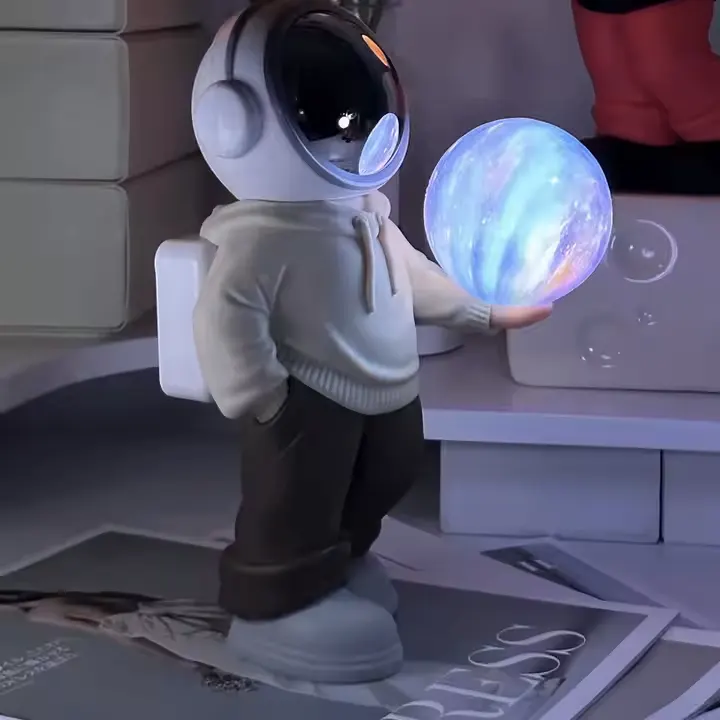 چراغ خواب فضانورد و اسپیکر مدل YM-121 یک چراغ خواب خلاقانه که همزمان نقش اسپیکر بلوتوثی را ایفا میکند. با نورپردازی ۳D آسمان ستاره ای با ۷ رنگ قابل تنظیم و با طراحی خاص و بدنهای مقاوم و مستحکم و عمر باتری طولانی ساخته شده است. میتوانید به موسیقی، پادکست با این وسیله گوش داده و لذت ببرید. ابعاد آن باعث شده تا کاربران بتوانند به راحتی آن را حمل کرده و به هر مکانی ببرند. برای استفاده در محیطهای مختلف بهویژه در فضای باز کاملاً مناسب است. نورپردازی آن را میتوانید به دلخواه در حالتهای مختلف تنظیم کنید. نور ملایم و رنگی آن فضای اتاق را آرام و رویایی میکند، در حالی که موسیقی دلخواهتان از طریق آن پخش میشود. برای ایجاد تجربه بصری جالب و زیبا برای استفاده در مهمانیها و دورهمیها مناسب بوده و فضایی هیجانانگیز و جذاب برای مهمانیها و جشنها ایجاد میکند. با بلندگوی بلوتوث داخلی، می توانید از طریق اتصال بلوتوث از موسیقی لذت ببرید. کیفیت صدای بسیار بالای آن نقطه قوت محصول است. میتوانید میزان صدای موسیقی را تنظیم کنید. پخش موسیقی با وضوح بالا و بدون افت کیفیت را به شما ارائه میدهد. با پشتیبانی از بلوتوث ۵.۰ به راحتی به گوشیها، تبلتها و لپتاپهای بلوتوثی متصل میشود. بدون نیاز به کابل یا اتصالات اضافی، میتوانید به سرعت به اسپیکر متصل میشوید.