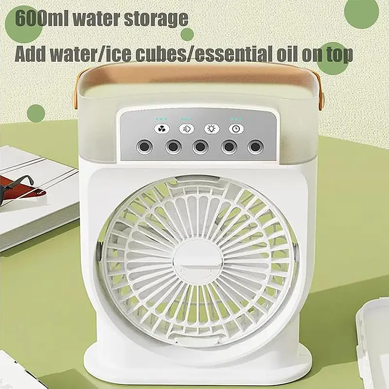 - پنل تنظیمات: کنترل آسان با دکمههای لمسی برای تنظیم سرعت و درجه خنکی.