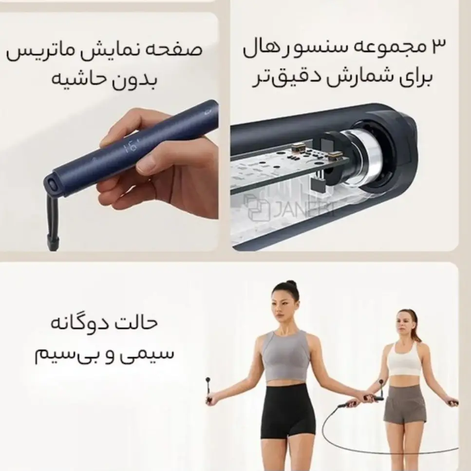 چربی سوزی هوشمند تراشه بلوتوث 5.0 سنسورهای با دقت بالاامکان ردیابی نتایج در اپلیکیشن MiHomeقابلیت اندازه گیری زمان و تعداد پرش ها مواد پلاستیک با کیفیت بالا