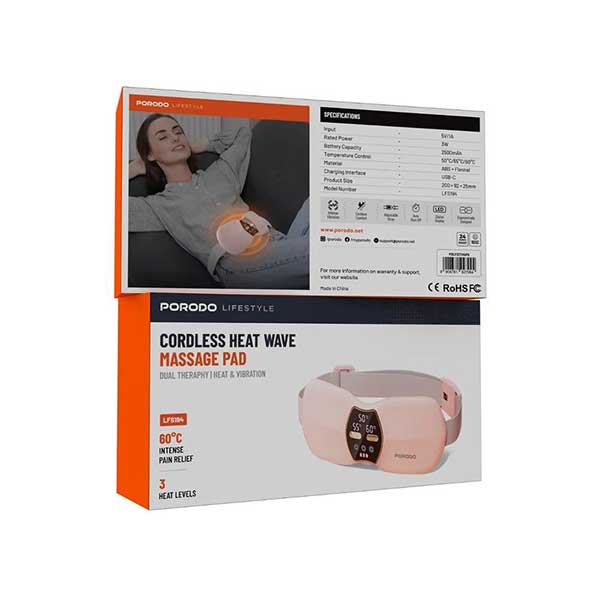 مشخصات کنترل دما : ۵۰/۵۵/۶۰ درجه سانتی گراد مشخصات فنی توان نامی : ۳ وات امکانات و قابلیتها درمان دو گانه (گرما و لرزش ) ؛ تسکین درد شدید تا ۶۰ درجه سانتی گراد ؛ طراحی ارگونومیک ؛ ویبره شدید ؛ راحتی بی سیم ؛ بند قابل تنظیم ؛ صفحه نمایش دیجیتال ؛ ۳ سطح گرما ؛ خاموش شدن خودکار ورودی ۵ ولت / ۱ آمپر نوع درگاه شارژ تایپ سی ظرفیت ۲۵۰۰ میلی آمپر ساعت ساختار بدنه ABS + Flannel