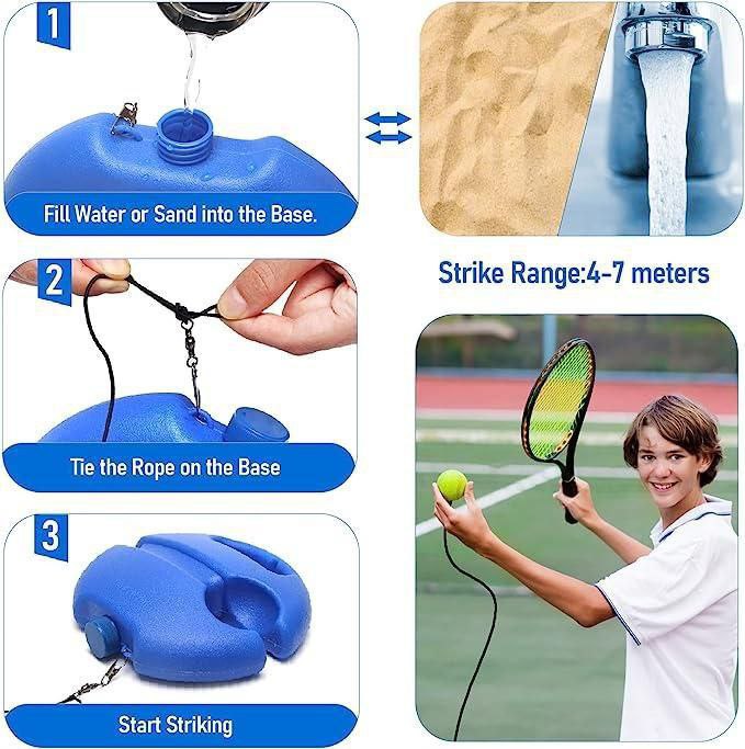 این محصول دارای پایهای است که با آب یا شن پُر میشود تا در برابر ضربههای پرقدرت توپ ثابت بماند. توپ تنیس با استفاده از یک بند محکم و انعطافپذیر به پایه متصل است، به طوری که پس از هر ضربه، توپ بهطور خودکار باز میگردد و امکان تمرین مداوم را فراهم میکند.