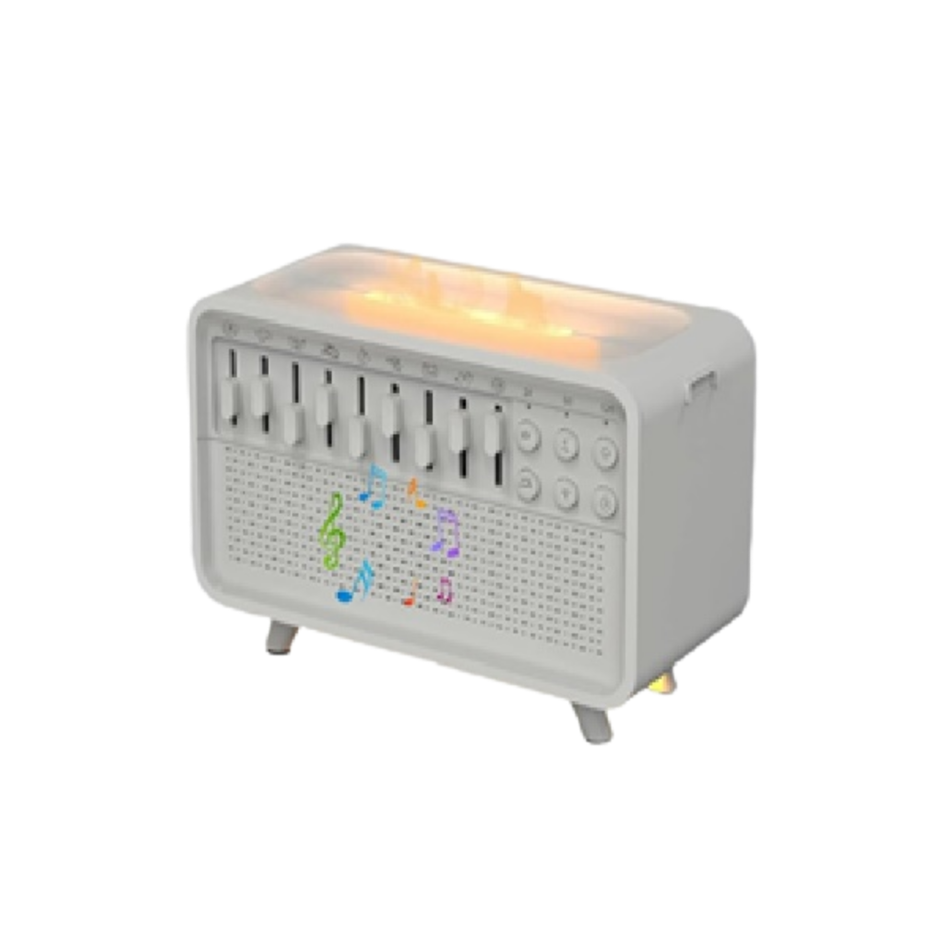 ظرفیت مخزن آب 200 میلیلیتر نورپردازی LED با افکت شعله اسپیکر داخلی با صدای سفید و طبیعت کممصرف و ایمن خاموشی خودکار هنگام تمام شدن آب مناسب اتاق خواب، اتاق کودک، محل کار، اسپای خانگی