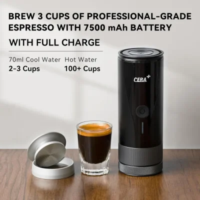 برند: CERA+ /حداکثر فشار: 20 بار قدرت گرمایش: 90 وات / باتری داخلی: 7500mAh زمان گرمایش آب: 3-4 دقیقه / دمای استخراج: 96 ℃ / 205 ℉ مدت زمان شارژ کامل: 3-3.5h / قدرت شارژ: 5v / 2A.3A ارسال : آماده ارسال به سراسر کشور ضمانتنامه: 7 روز تعویض در صورت ایراد